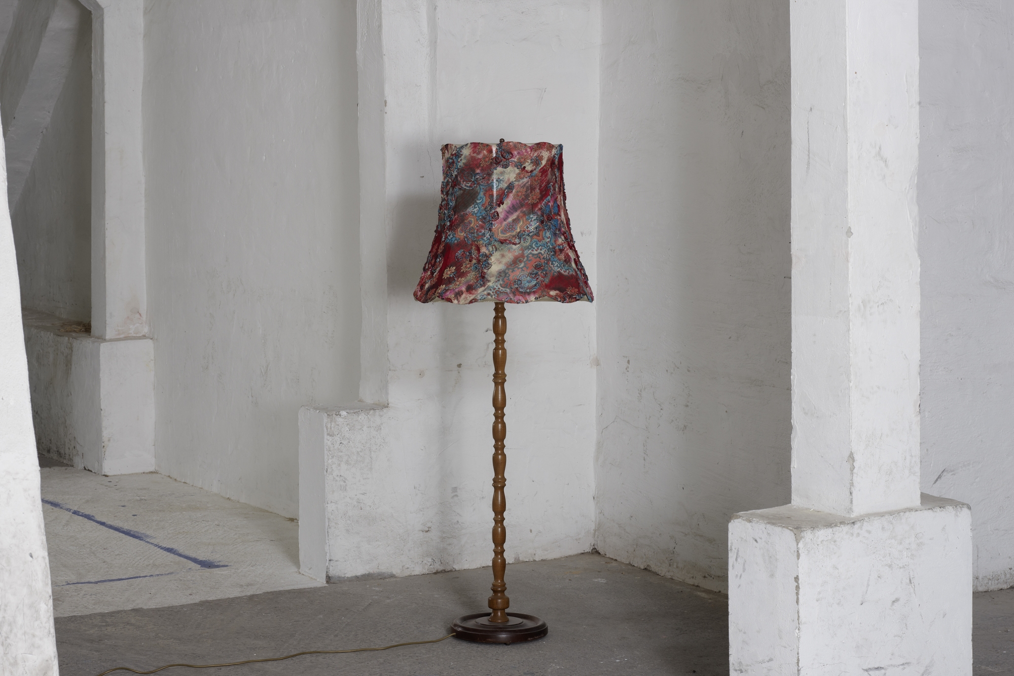 Material: Drahtgestell, Stoff, Holzständer