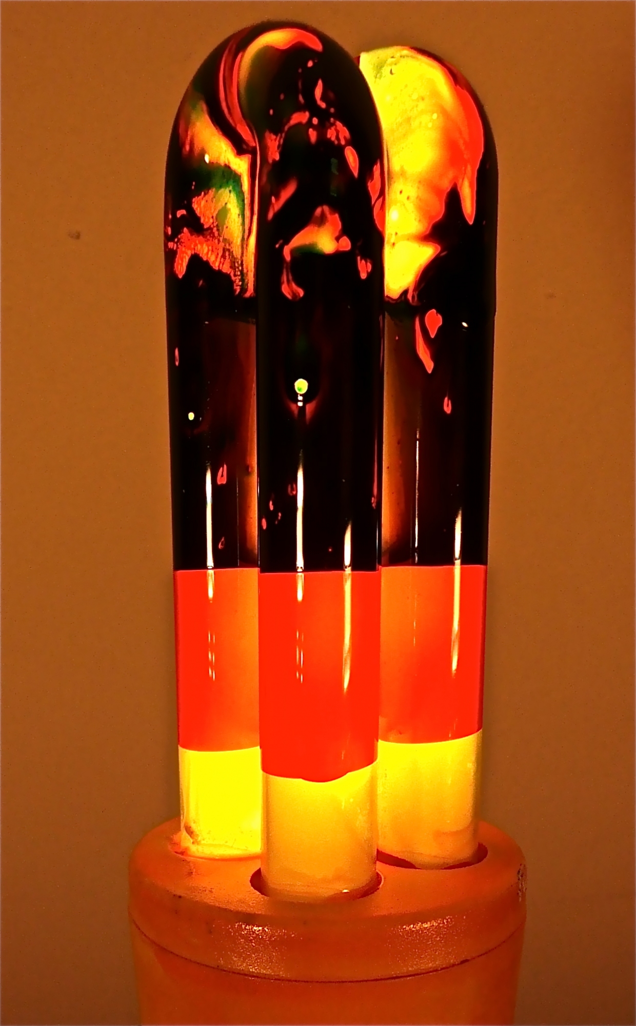 Es war einmal ein Irrlicht, das hatte sich verirrt und tanzte blass und ruhelos durch die Nacht. Da erbarmte sich seiner eine Fee. Sie gab ihm ein Kleid aus Feenstoff und setzte es auf einen festen Stab. So fand es endlich Ruhe und erstrahlt und leuchtet seither in irren Farben!