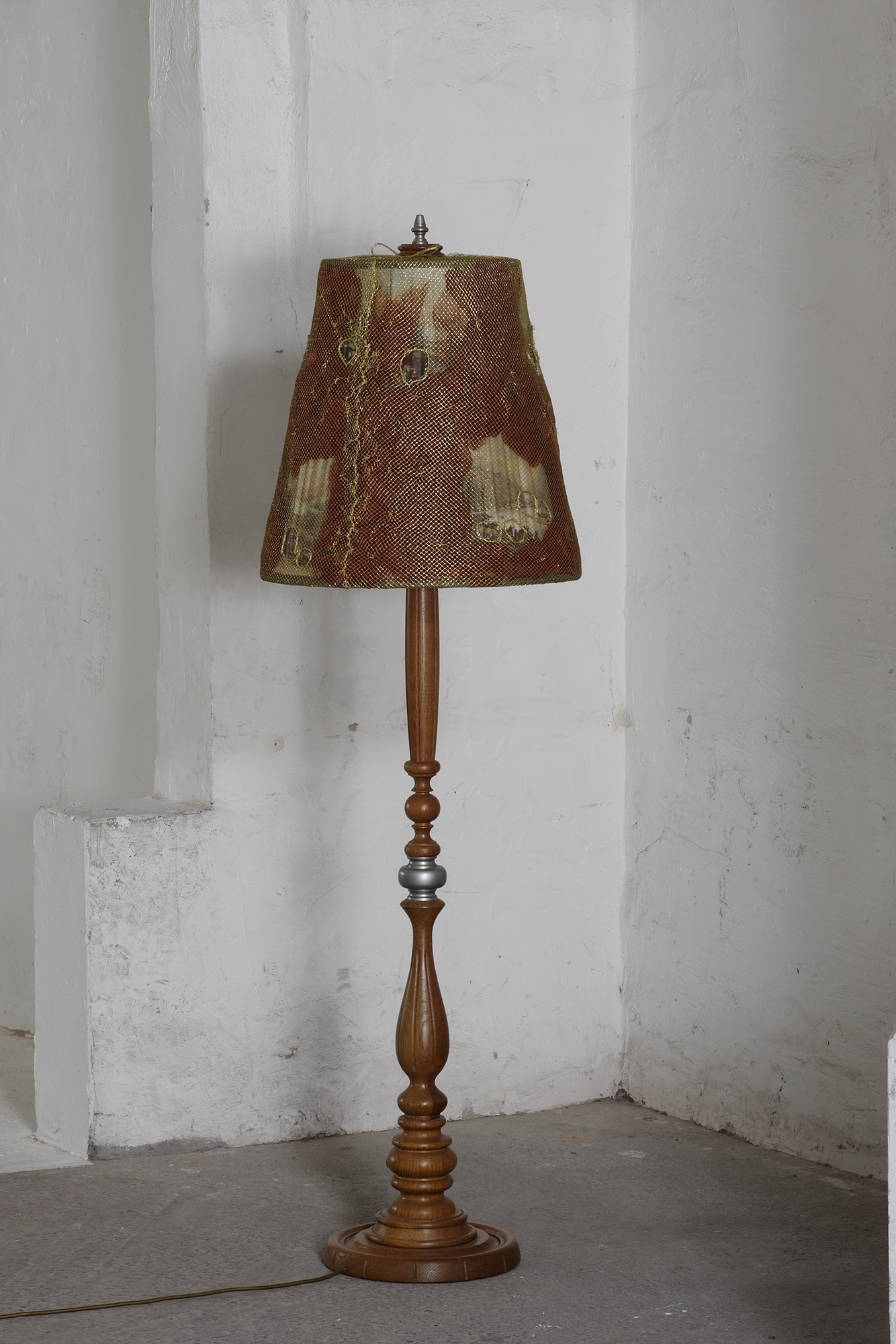 Material: Drahtgestell, verschiedene Stoffe, Holzständer